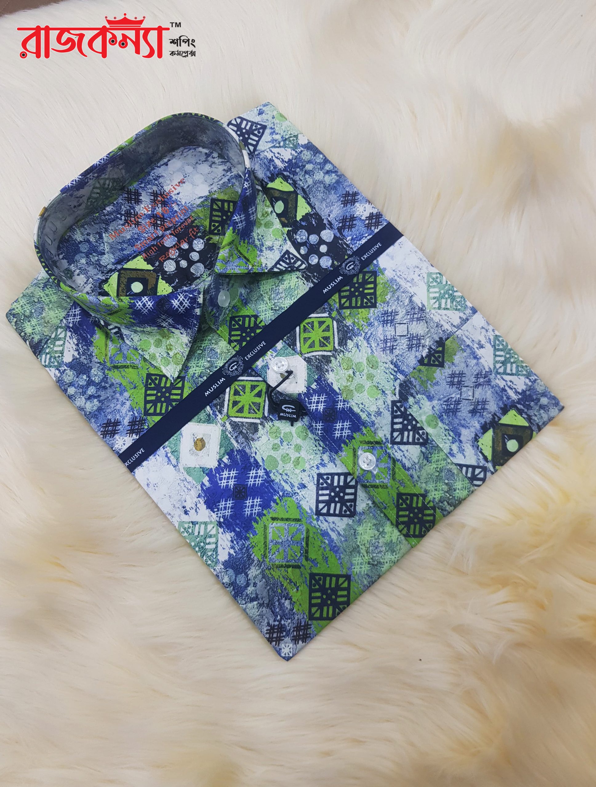 Make a bold style statement with this Men’s Exclusive Printed Shirt from Maulana Exclusive. Featuring a striking mix of blue, green, and white tones with abstract geometric prints, this shirt brings energy and personality to your wardrobe. Crafted from a soft, breathable fabric, it ensures all-day comfort while delivering a standout look. Whether for casual outings or festive occasions, this shirt is designed to turn heads.